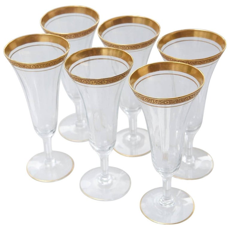 vintage gold rim stemmed wine glasses champagne flutes