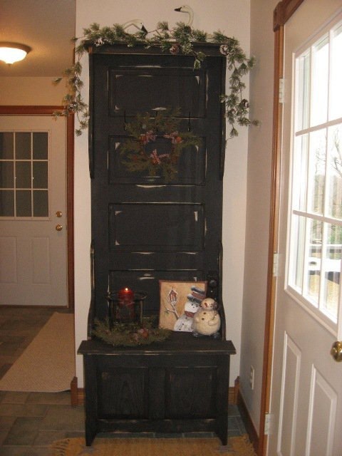 antique door hall tree storage bench